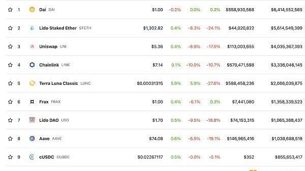 DeFi项目锁定资产前十排名及锁仓量数据来源:defillama