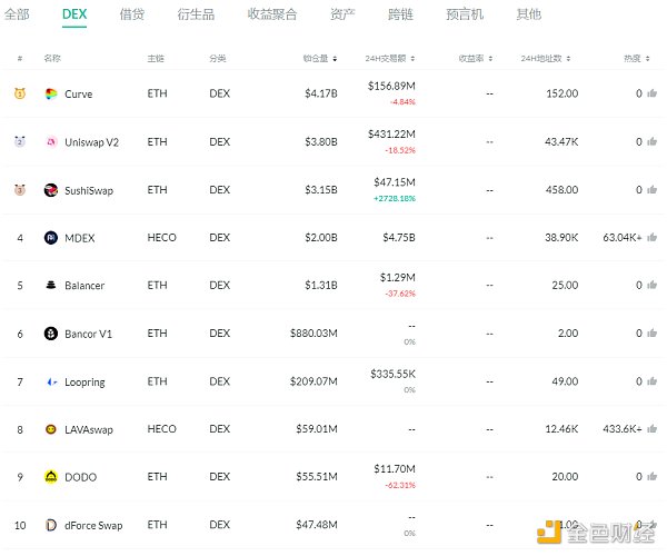 过去24小时去中心化交易所的交易量数据来源:Debank