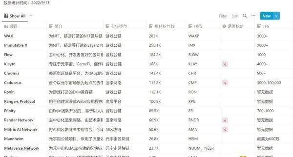 哔哔News整理了15条元宇宙公链,部分数据如下图。
