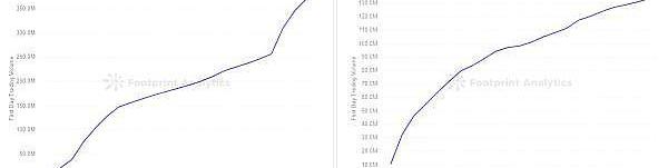 FootprintAnalytics数据显示,从各项目首日公售的交易量来看,Otheredeed的日交易量高于MAYC、Azuki或Moonbirds项目。前者使用APE交易购买,后三者是使用ETH交易购买。这意味着OtheredeedNFT在公售当天比其他项目NFT更具吸引力。