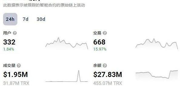 据DappRadar数据,JustLendDAO在过去24小时里,用户增长1.84%,交易数增长15.97%,成交量增长112.92%。