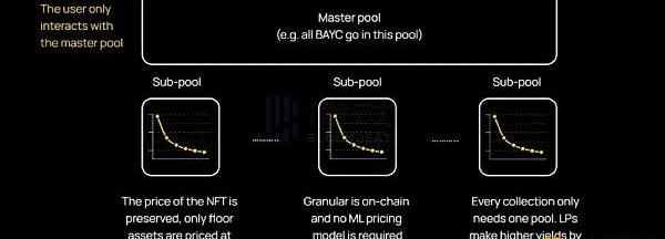 并且,每个子池都有自己的联合曲线,子池的数量和每个子池中的NFT数量则因NFT集合而异,该NFT集合的流动性越高则子池的数量越多。