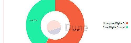 根据下图,我们又发现在所有域名中,纯数字域名占据了42.6%的比例。