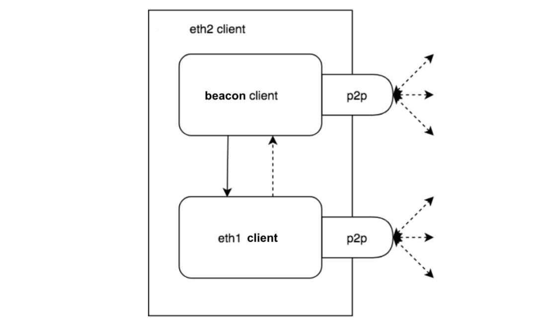 之前提到,以太坊合并是以太坊执行层和信标链作为共识层的升级融合。原来PoW的客户端被停止了共识的责任,而专注于mempool、执行有效性和EVM。而信标链则被启动了共识的责任,即区块投票和区块提议。