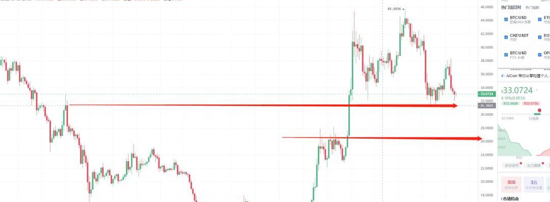 ETC全网算力一度达到46.04TH/s的历史高点,像前面说的关注31.5和26.5这个两个支撑平台,随着升级的临近,机会还是有的,上方抛压36.4