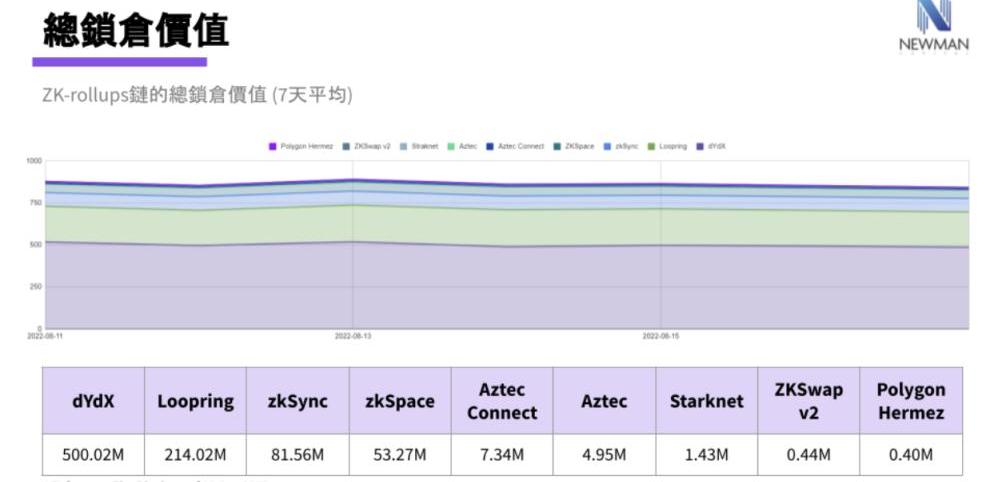 总锁仓价值:PolygonTVL为19.1亿美元,很好地抓住了L2的价值,仅次于以太坊和BNB链。Polygon的PoS链在扩容范围内具有主导地位,但在ZK-rollup领域,PolygonHermez的存在薄弱,只有0.05%的市场份额。