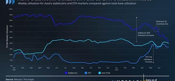 虽然稳定币达到了过去6个季度的最低利用率,但对以太坊贷款的需求保持住了Aave的整体利用率。