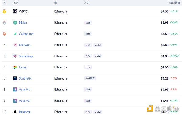 DeFi项目锁定资产前十排名及锁仓量,数据来源:Debank
