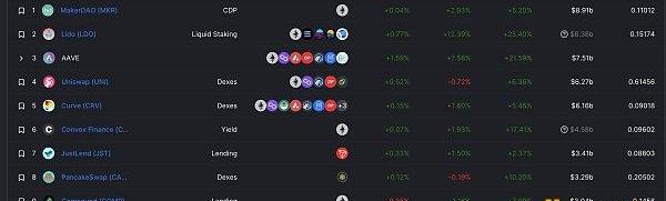 DeFi项目锁定资产前十排名及锁仓量数据来源:defillama