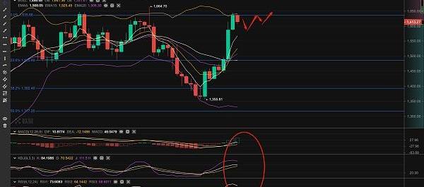 以太坊行情分析:从1小时线看,布林带开口,MACD绿色量柱缩量,KDJ和RSI均拐头向下,早间行情涨至上轨附近承压回落,4小时线,布林带开口,MACD绿色量柱放量,KDJ和RSI均有拐头向下的趋势,短期来看,行情涨至上轨附近承压回落,有回踩下方支撑的趋势,下方可关注1600-1580附近的支撑,上方则关注1645附近的压制。
