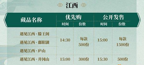普通版+典藏版:此次「夏日寻踪·遇见江西」数字藏品包含4款,共发行6800份,其中1款「遇见江西·井冈山」为典藏版800份,剩余3款为普通版各2000份。