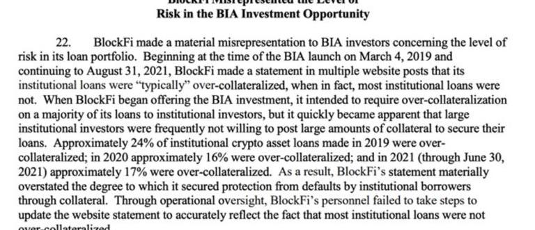 来自美国证券交易委员会关于BlockFi的声明中指出BlockFi对BIA投资机会的风险水平做了错误的陈述。由智能合约管理的DeFi借贷协议不会允许这种情况发生,因为借贷规则会在智能合约中明确说明。