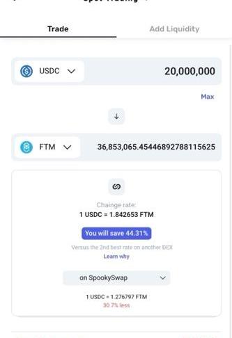 以上您看到的是Chainge的瓶颈,因为它只能通过Pancakeswap和Biswap路由来交易SOL。它目前还没有获得Solana上的所有流动性。这与大多数与Chainge没有完全集成的代币的叙述大致相同。这是一个更微妙的例子。Chainge输给了Paraswap,因为它没有聚合到FTM上发现最多流动性的每个DEX。