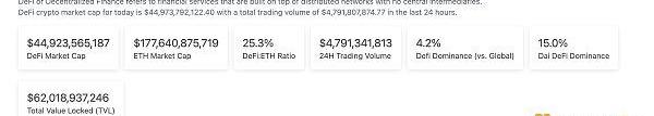 1.DeFi代币总市值:449.23亿美元