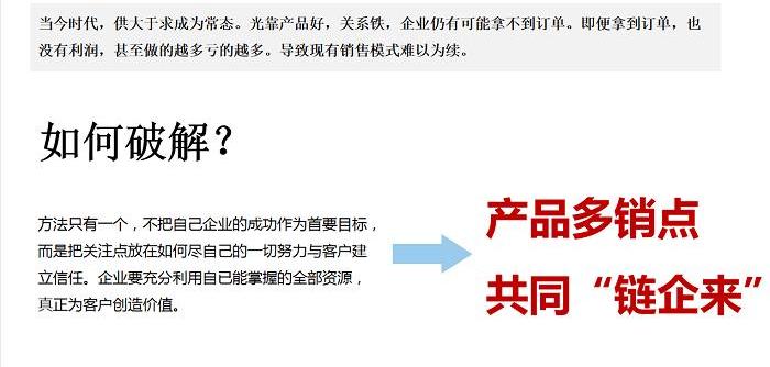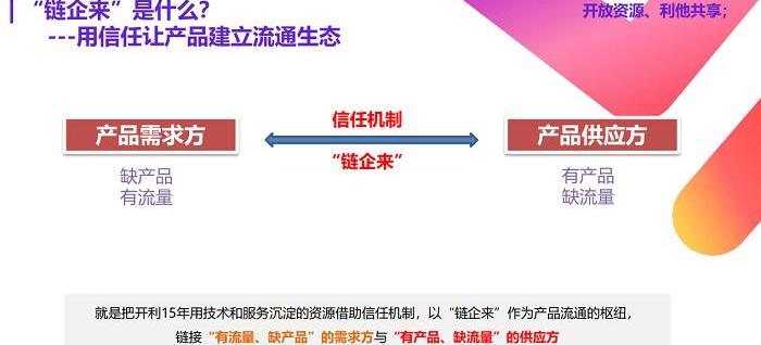 在沙龙会上,开利网络商学院院长沈总表示,企业数字化转型不只是为了迎合互联网发展趋势,也是为了让企业基于自身特点建立线上线下相结合的新营销机制,从而延长企业生存周期、获得更大的收益价值。但是,数字化并非一日之功,也并非所有企业都具备完整运营思路、完备运营团队、充足的供应链及稳定的流量来源等关键要素来进行数字化工具落地运营。因此,开利网络“链企来”项目基于信任机制,将整合企业自身15年技术和服务沉淀的资源,以“链企来”作为产品流通的枢纽,链接“有流量、缺产品”的需求方与“有产品、缺流量”的供应方,为企业构建“共建、共享、共销,共赢”的产品流通生态。